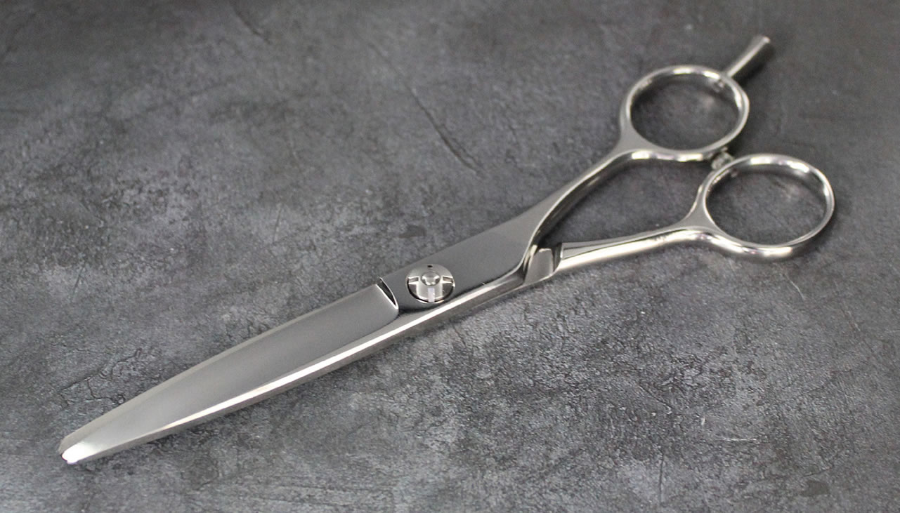 このシザーは片方にしか「刃」がついておらず、また刃の形状が笹刃なので滑りが良くスライドしてもお客様の髪の毛を傷めず、引っ掛けず、挟まらず、キューティクルがめくれ上がる感じもありません。