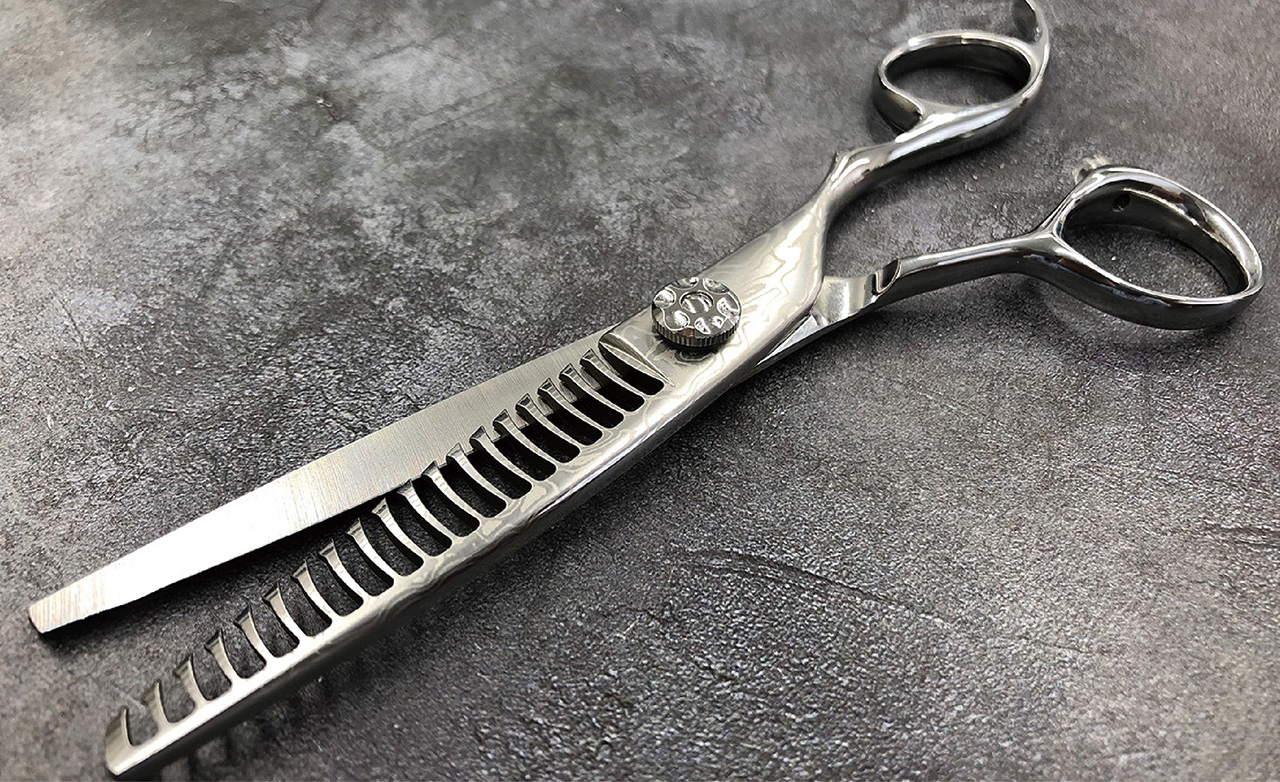 特殊クシ刃形状が特徴の新型目数19目のダマスカスセニング。ダマスカス特有の柔らかい切れ味で髪の毛へのダメージも少なく、特殊形状により抜けも良い。