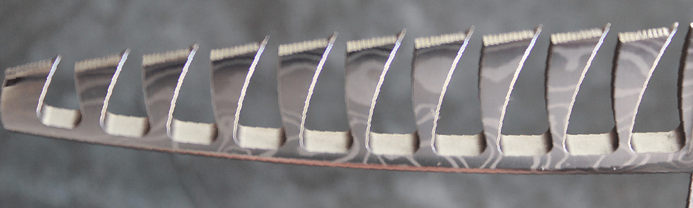 計算されたクシ刃形状と柔らかな切れ味を誇るダマスカス鋼をミックスすることにより機能的・効率的なセニングが生まれました。セニングとしても、シザーとしても使えるまさにハイブリットセニングです。